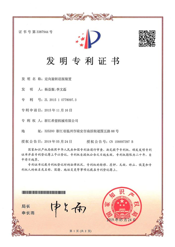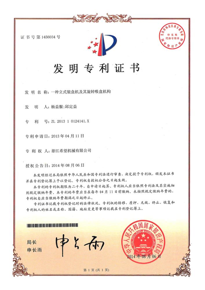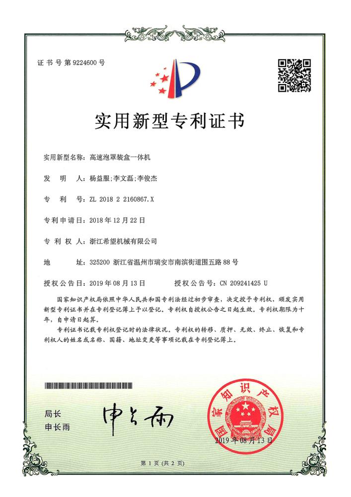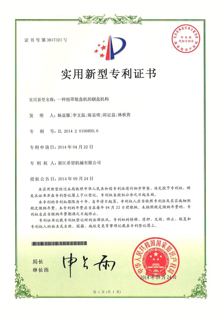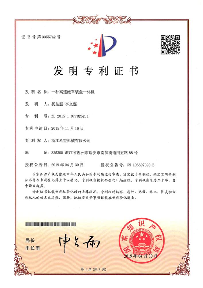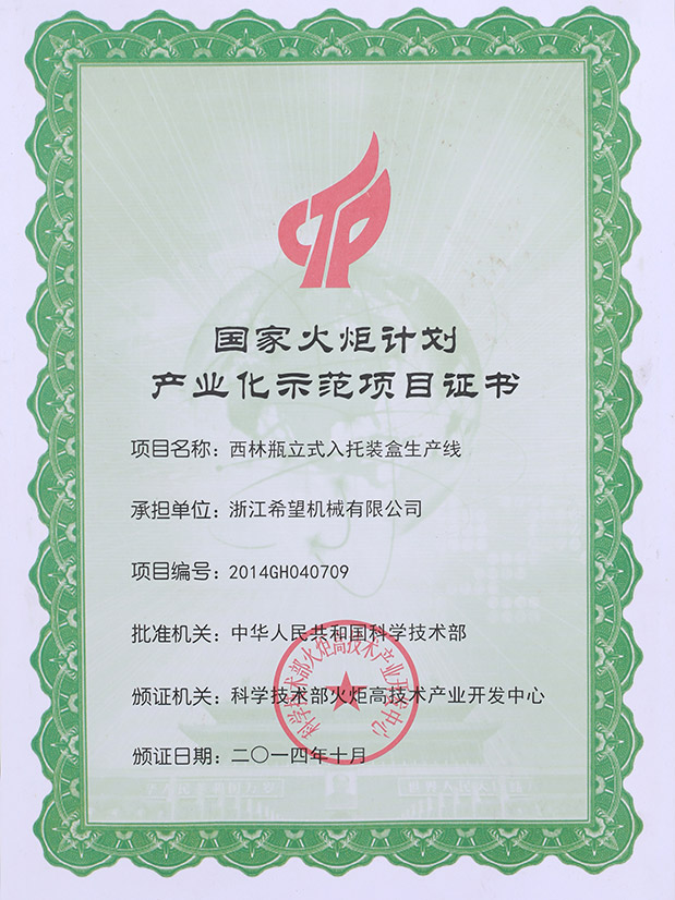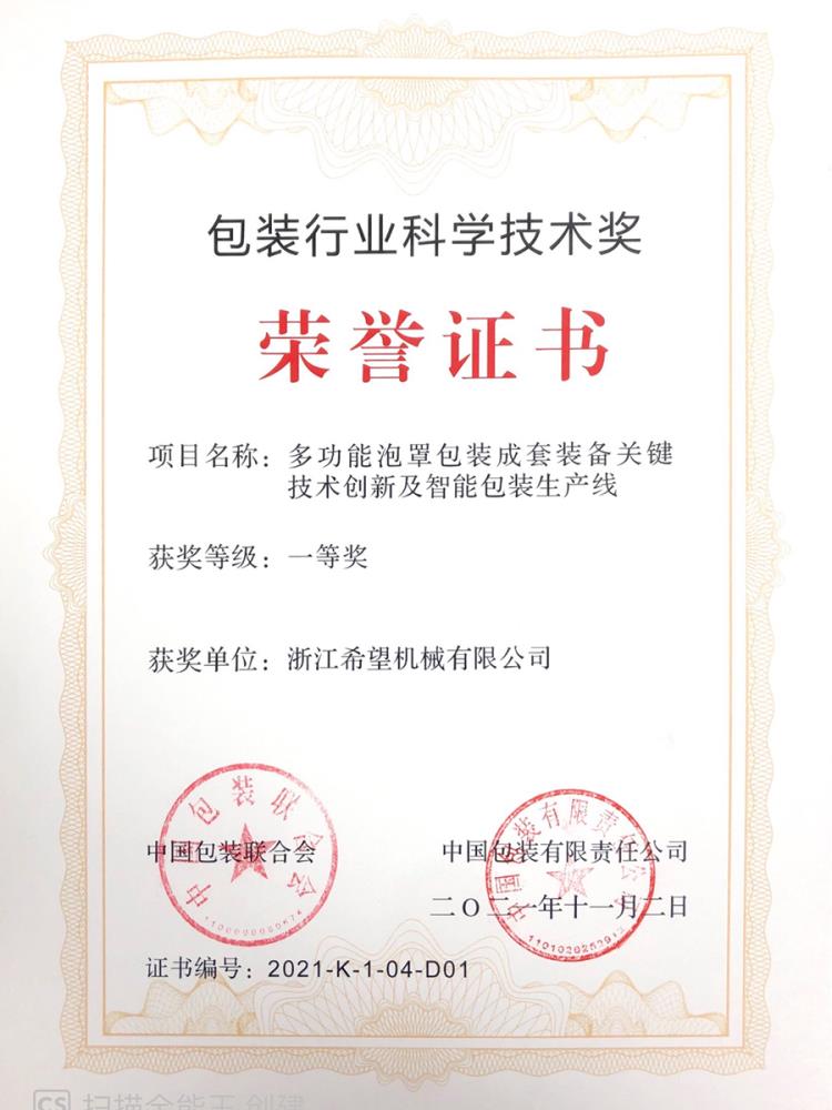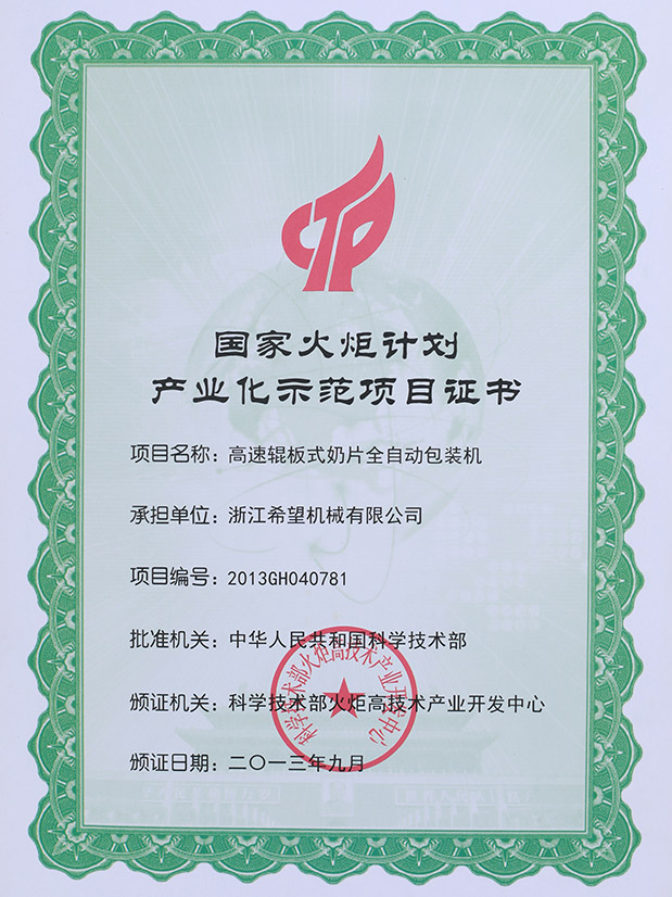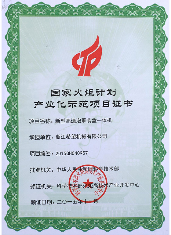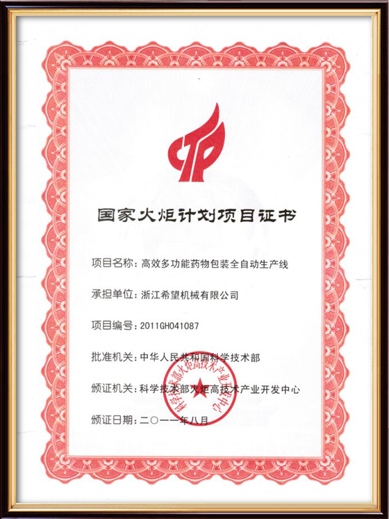 2016年“DHL600高速泡罩裝盒一體機(jī)”獲浙江省首臺(tái)套產(chǎn)品榮譽(yù)稱號(hào)。