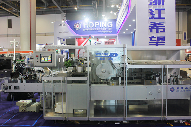展會現(xiàn)場,浙江希望展出了DPH320HII全伺服高速輥板泡罩包裝機、XWZ300Ⅱ高速裝盒機、全自動泡罩裝盒包裝生產(chǎn)線等。